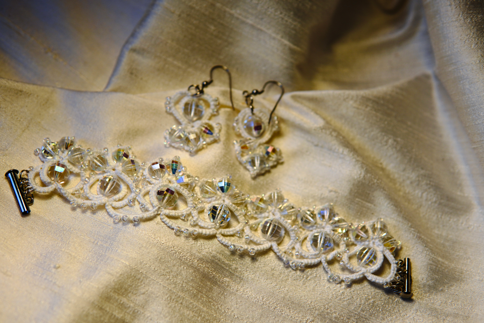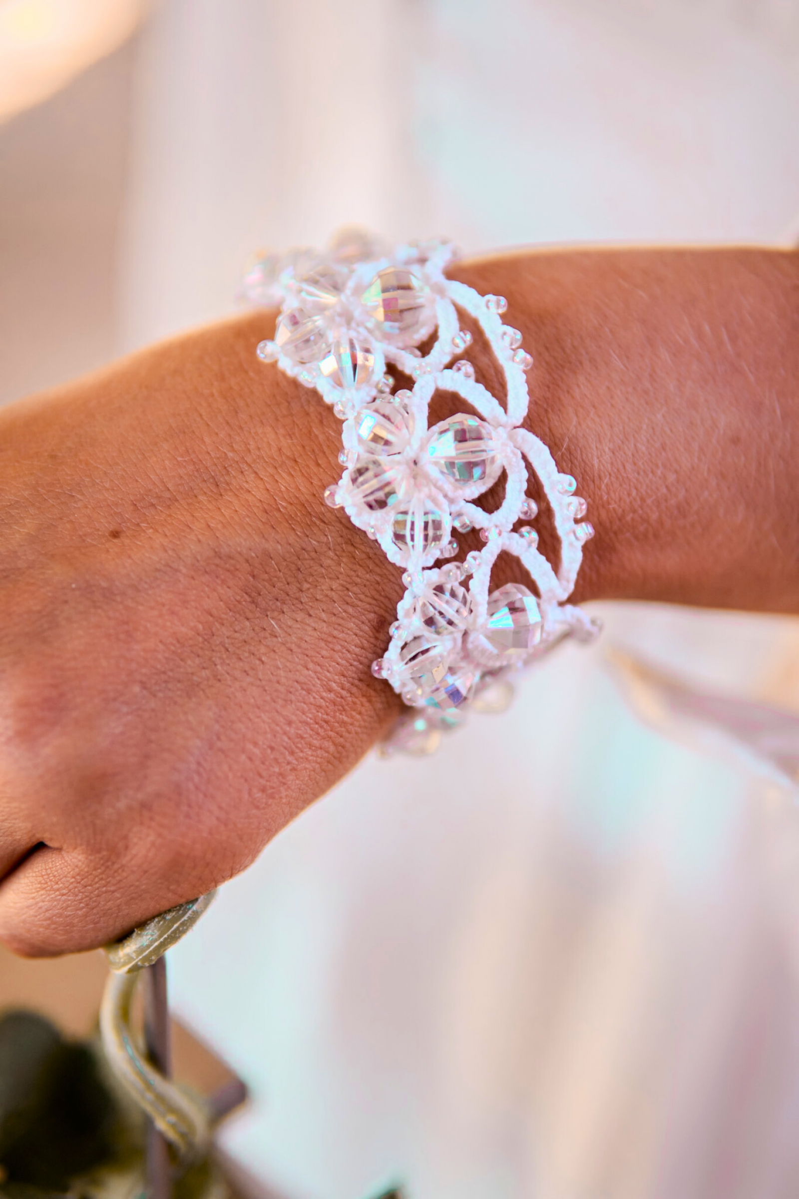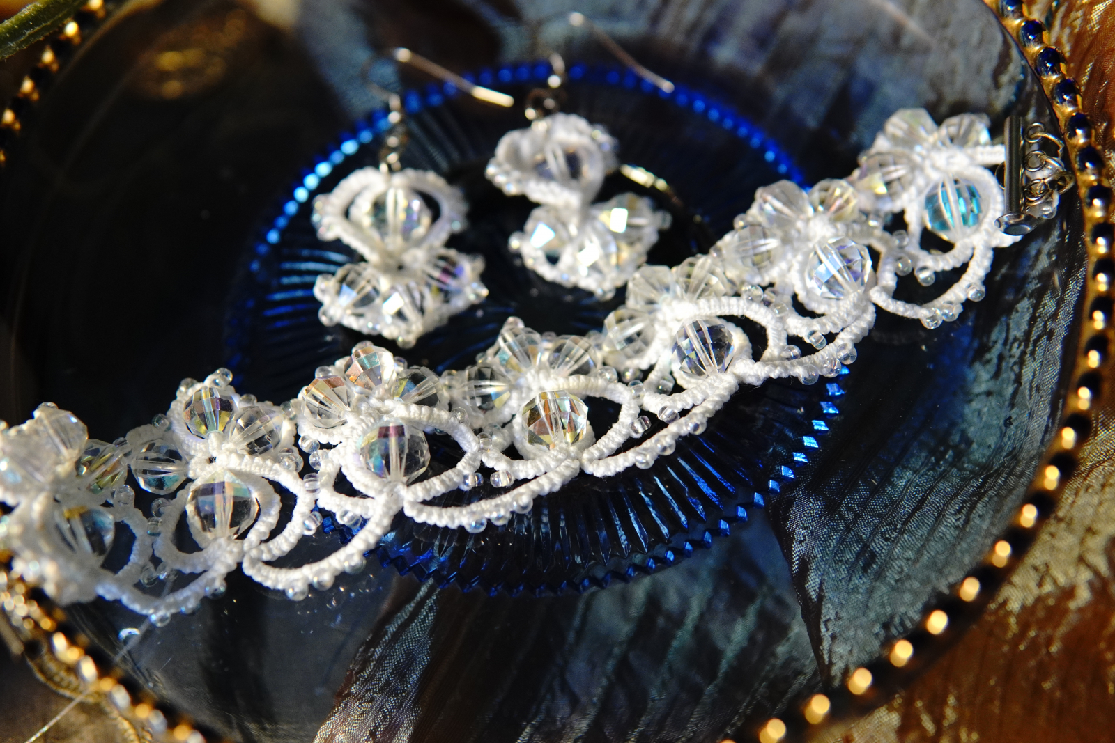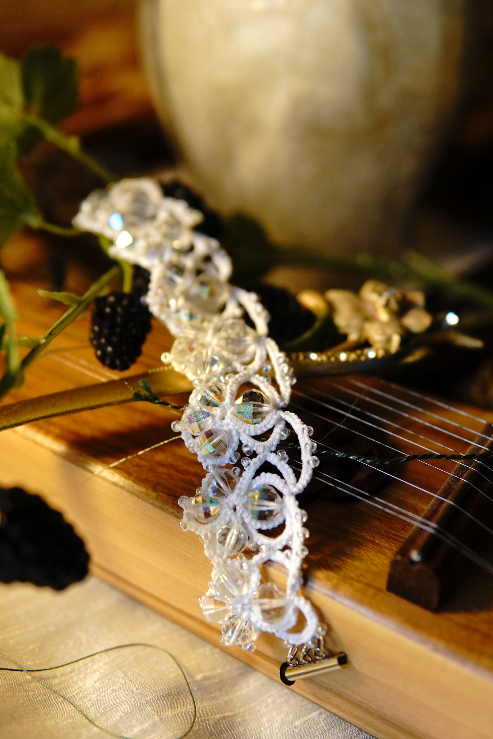 Crystalfathom Bracelet – White Tatted Lace with Vintage Swarovski Crystals
