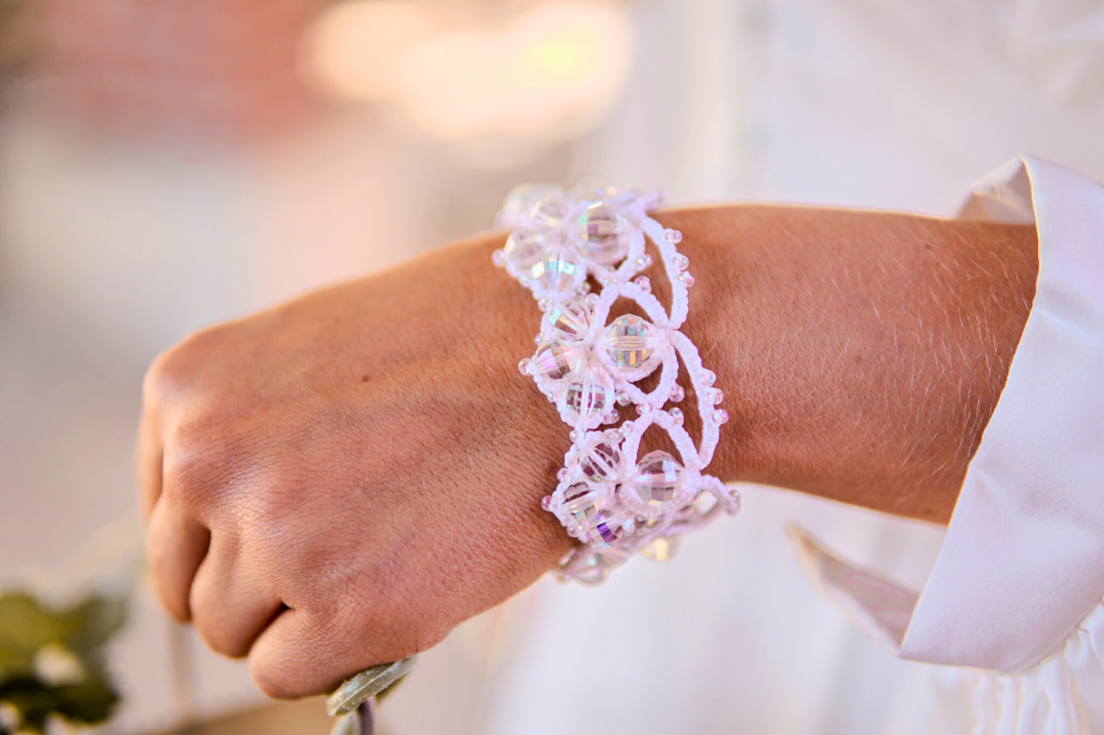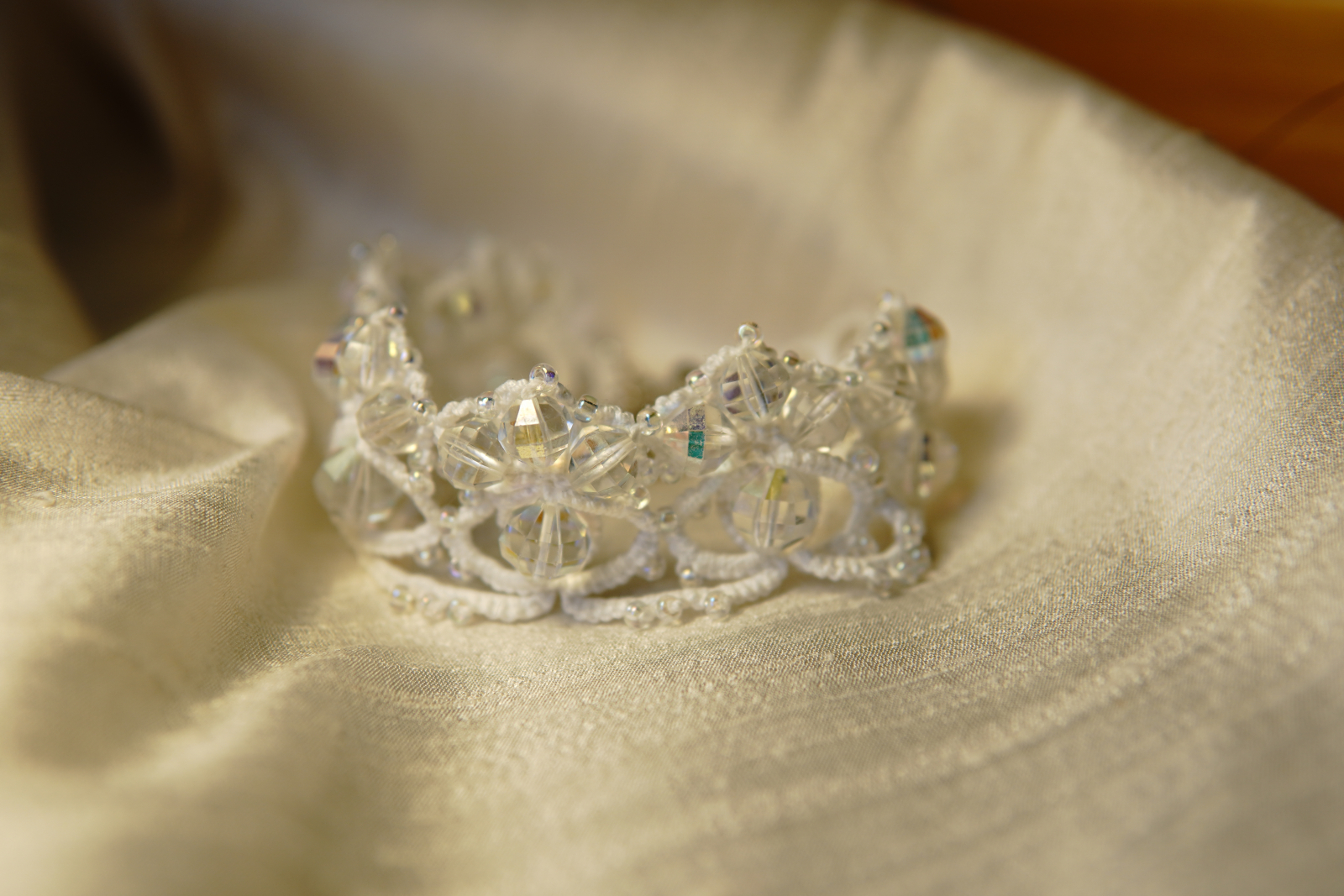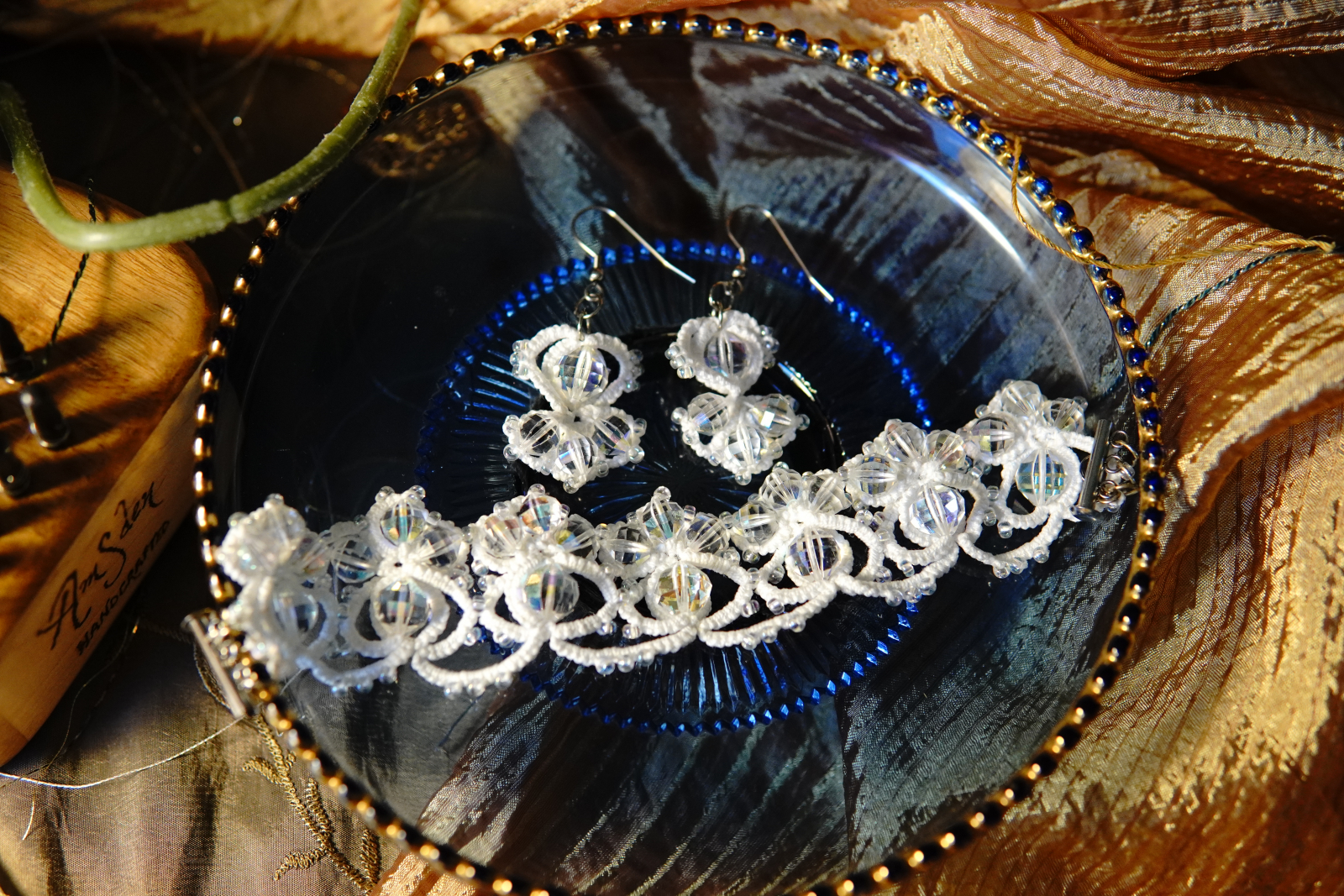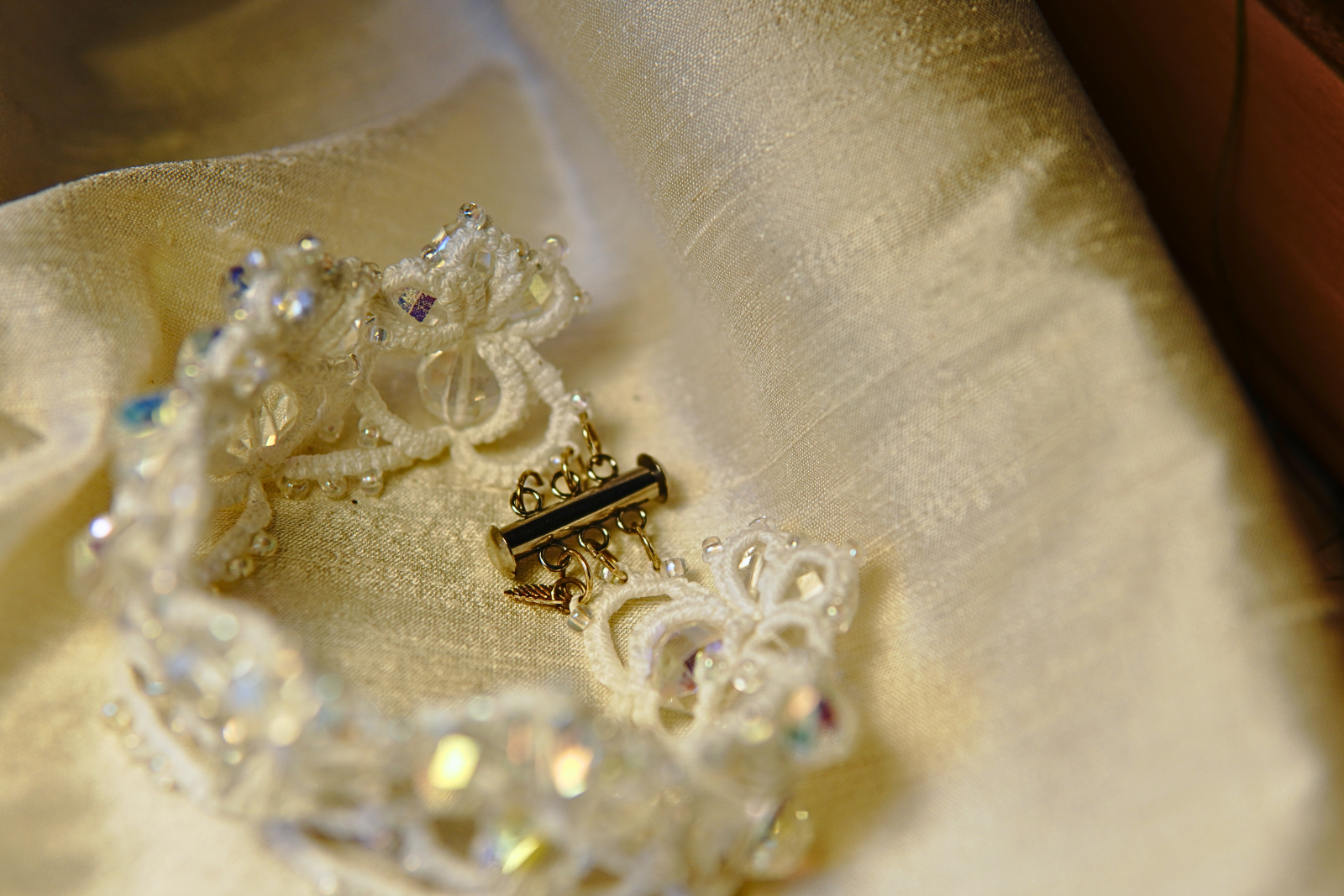 Crystalfathom Bracelet – White Tatted Lace with Vintage Swarovski Crystals