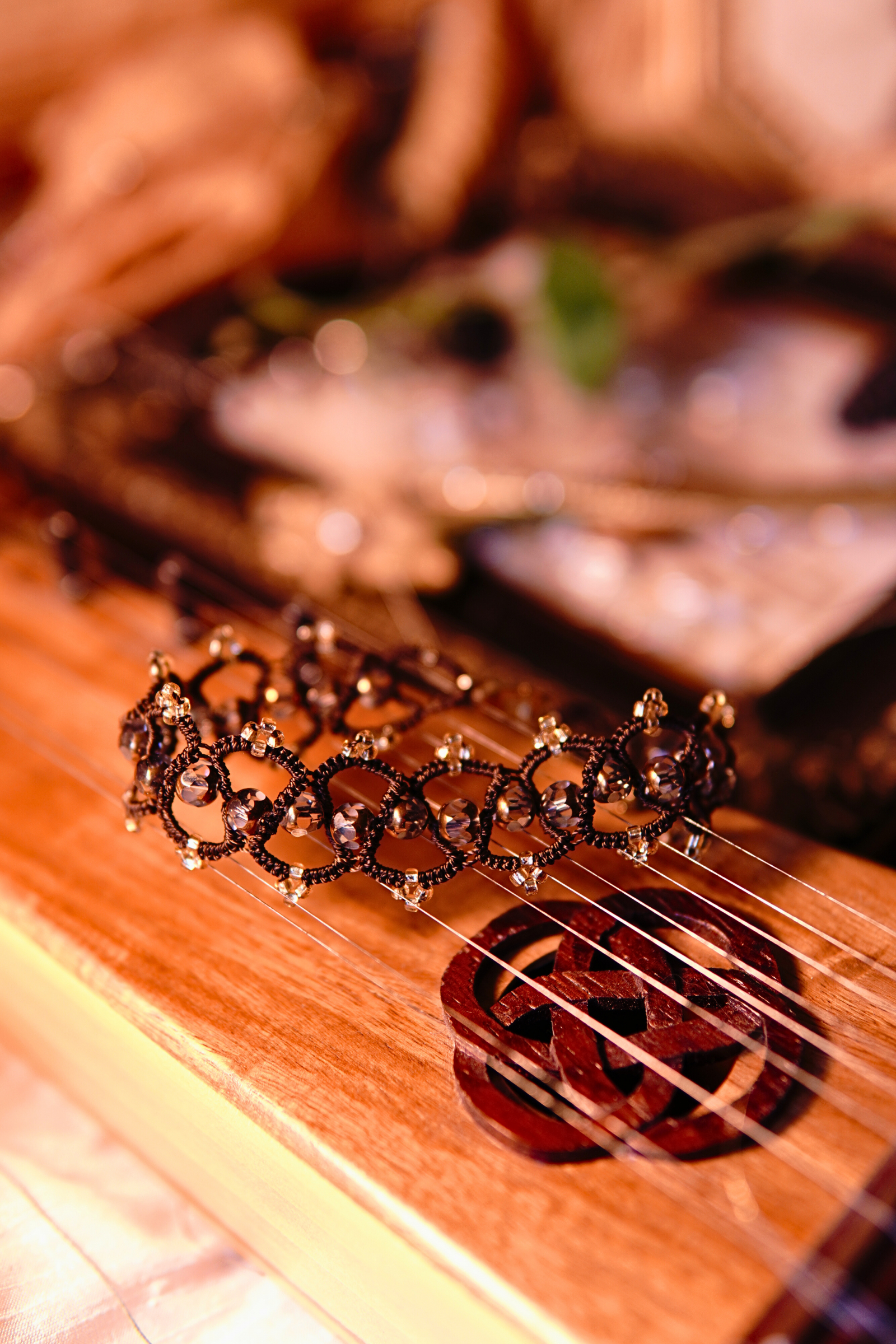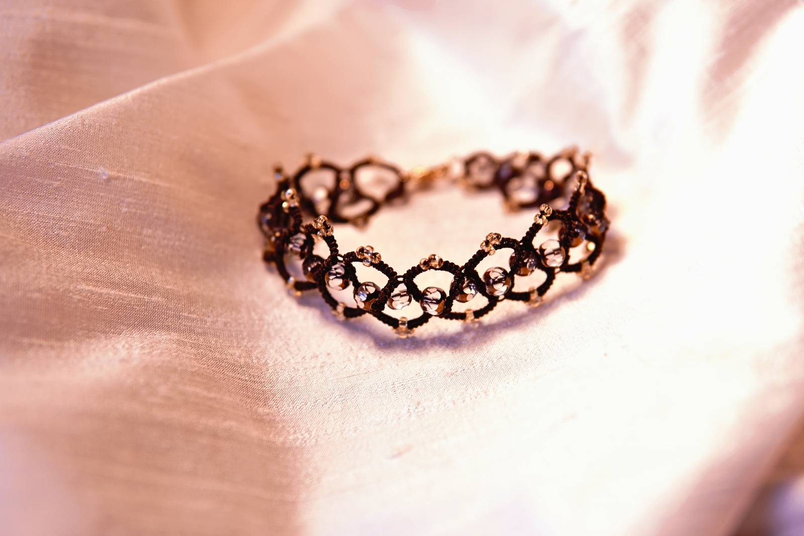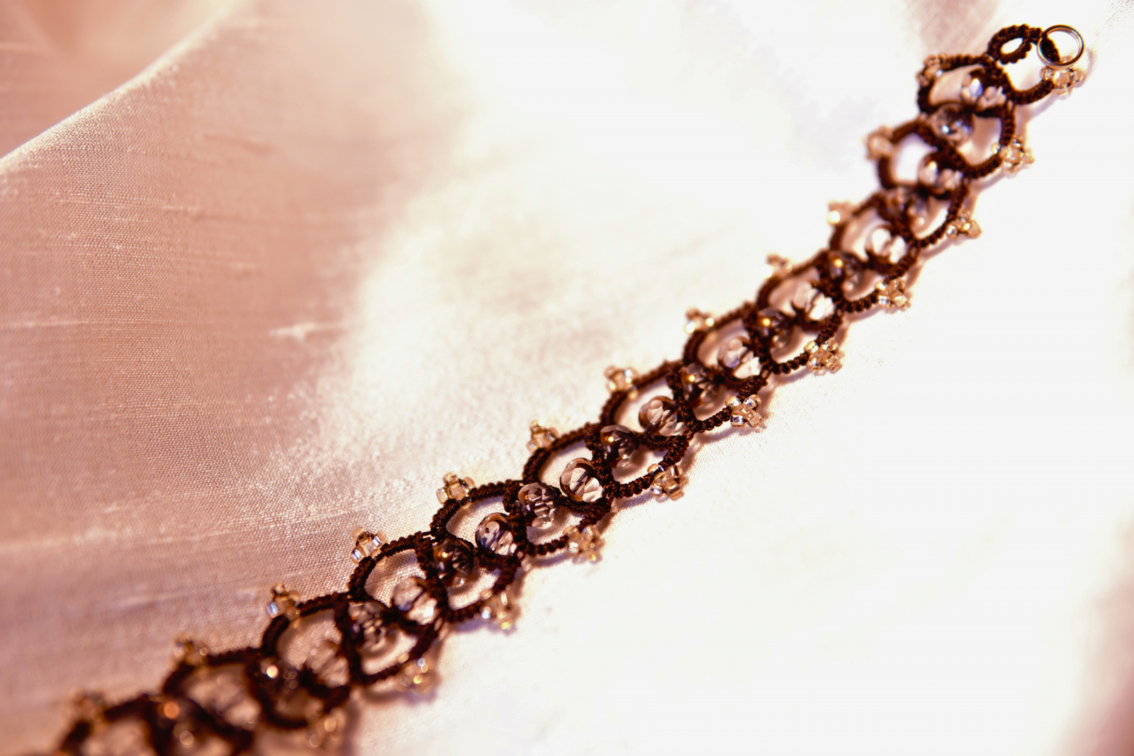 Lanternroot Bracelet – Brown Tatted Lace with Golden Crystals