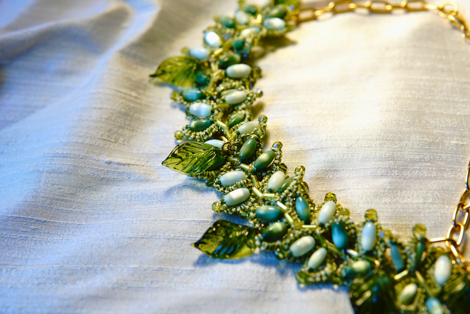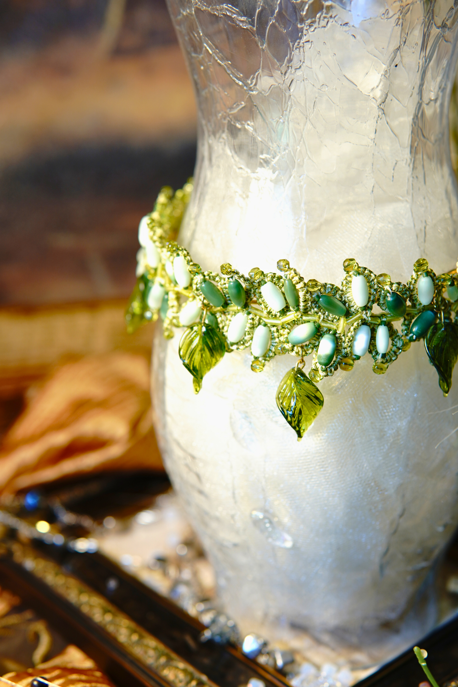 The Tale of Seralith Verdanthae – Tatted Leaf-Crown Necklace of the Verdant Court