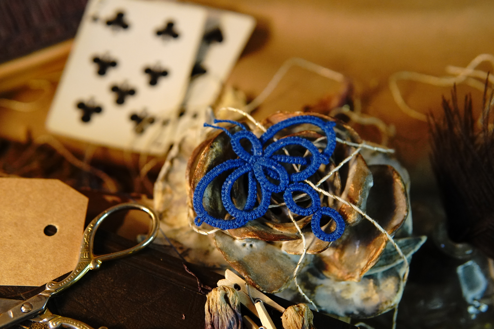 Each piece is individually tatted by hand, giving it subtle variations and a unique personality.