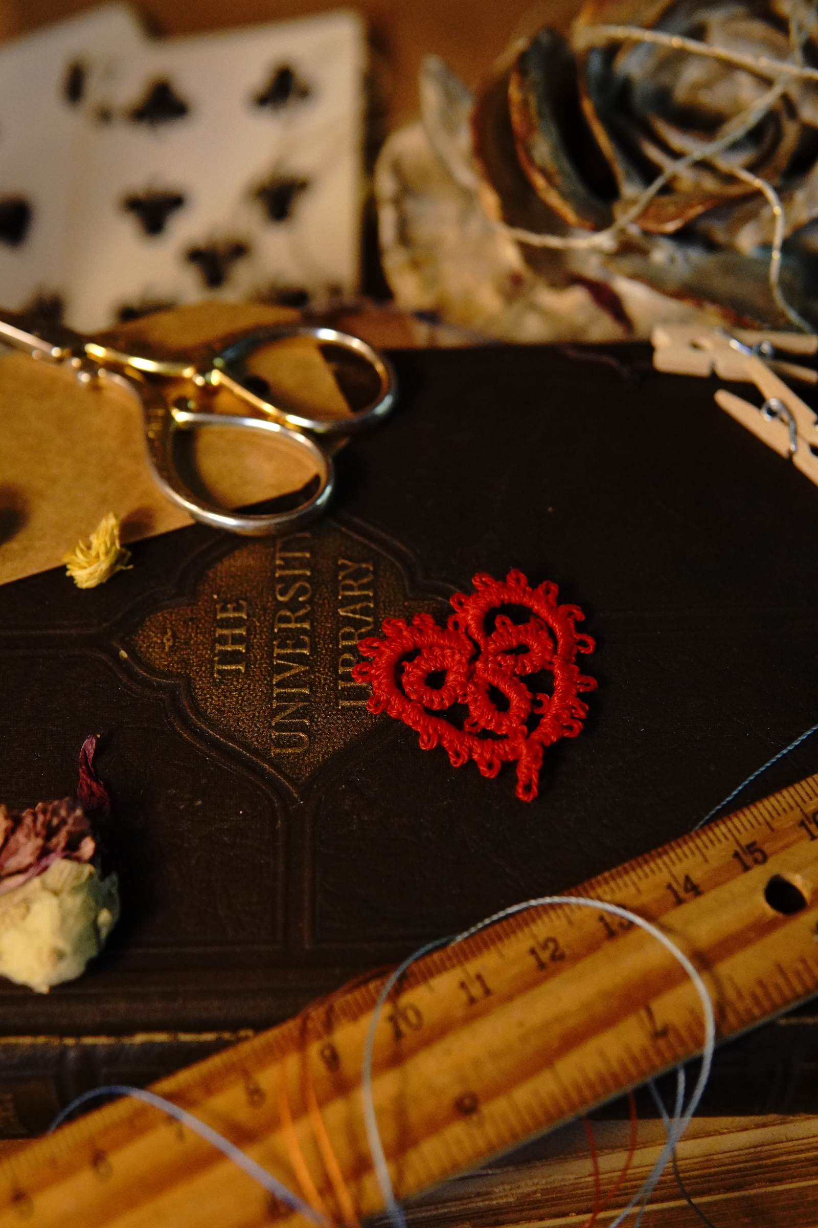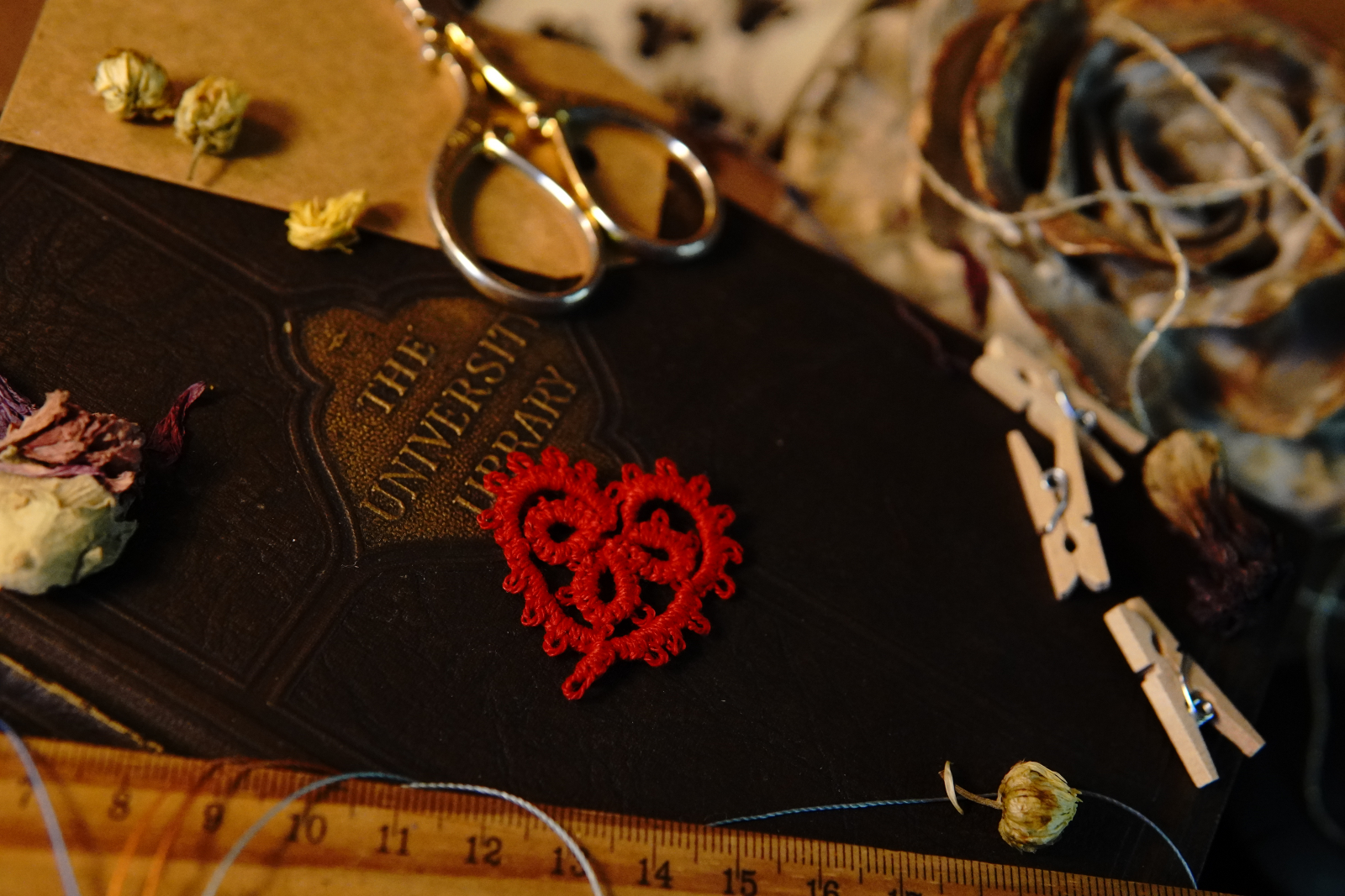 A small, timeless embellishment made with care — perfect for Valentine cards, love notes, wedding albums, heritage scrapbooks, or any project that needs a touch of hand-tatted lace.