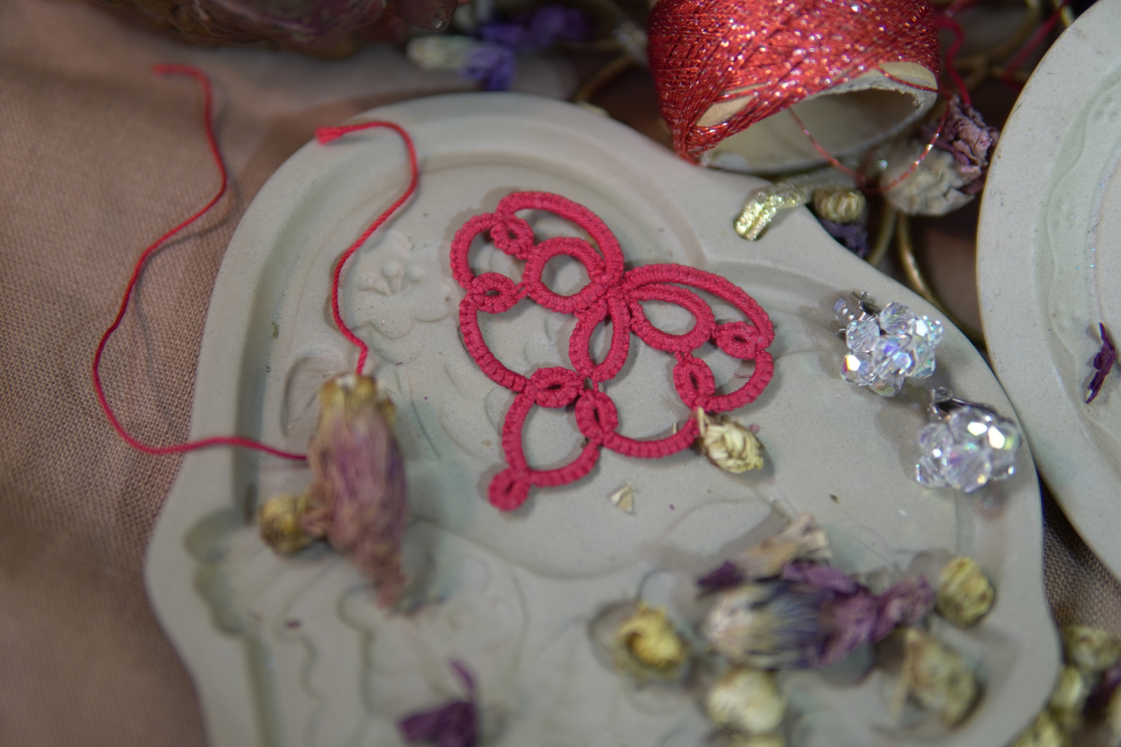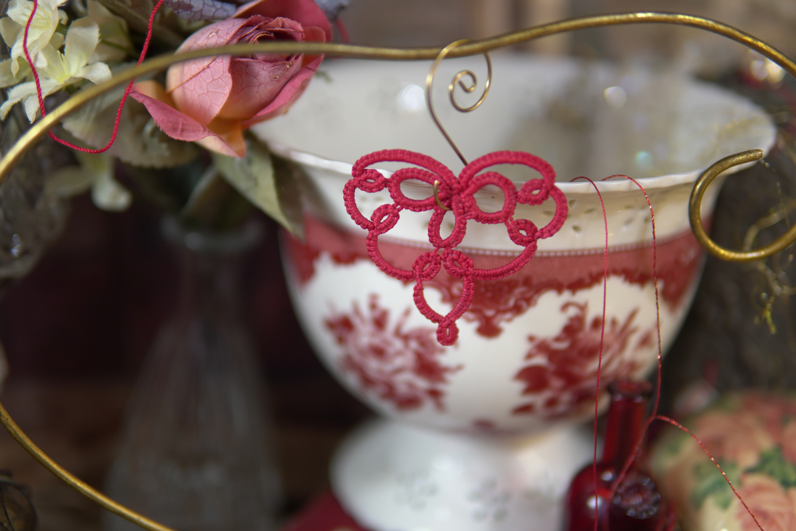 Tatted in vibrant red and formed from graceful curves, this heart reflects the charm of turn-of-the-century lacework while keeping the warmth of modern handmade craft. Whether gifted, collected, or tucked into a special note, it carries the sweetness of something made with intention.