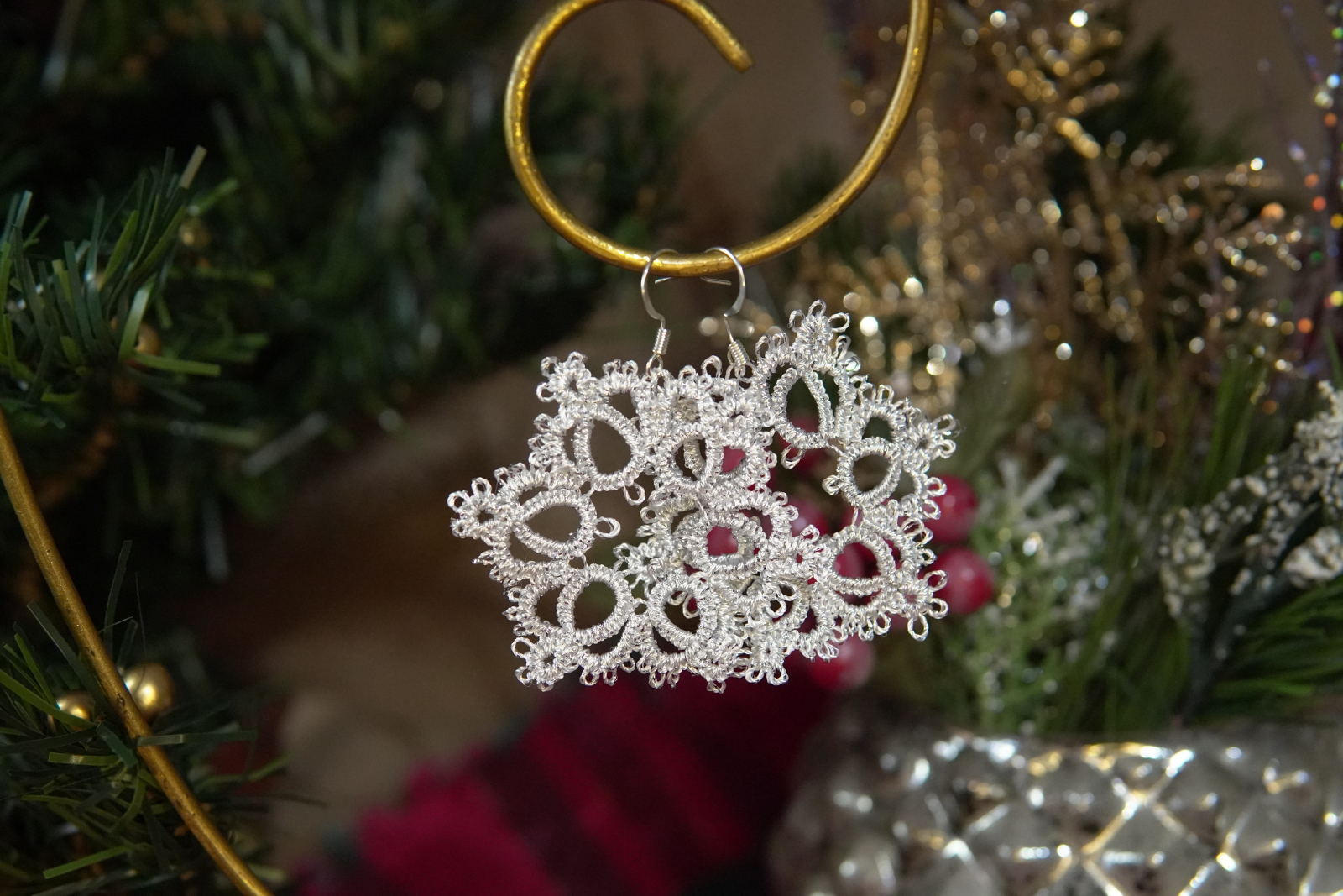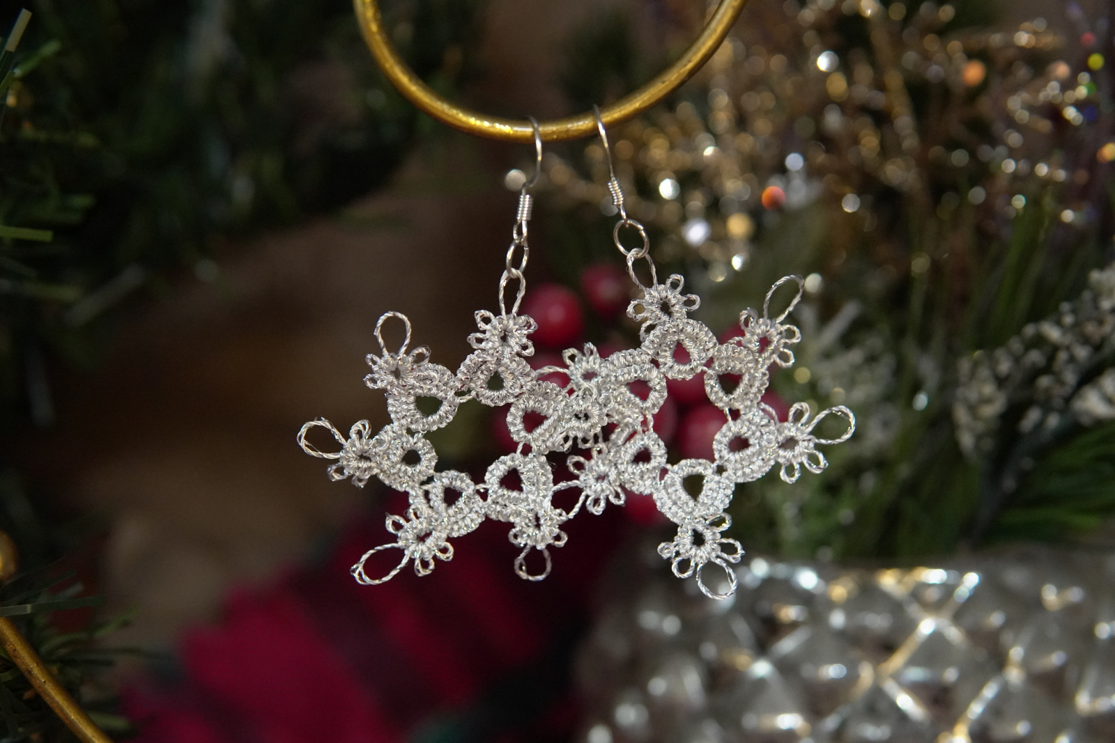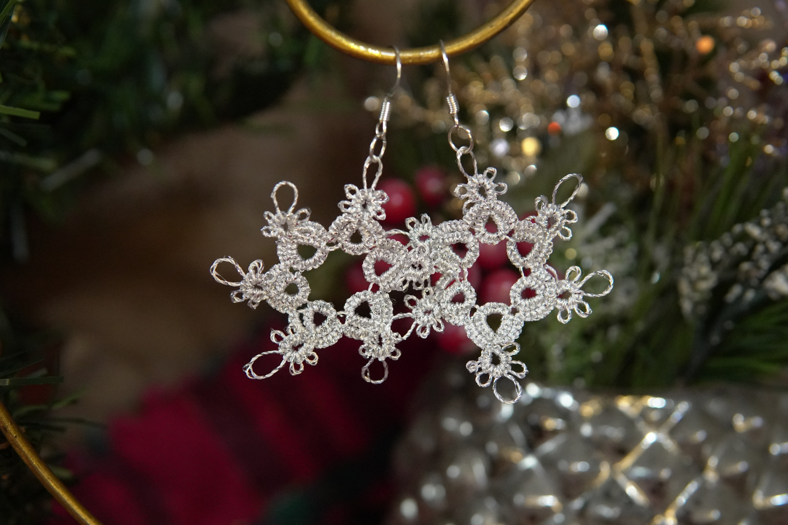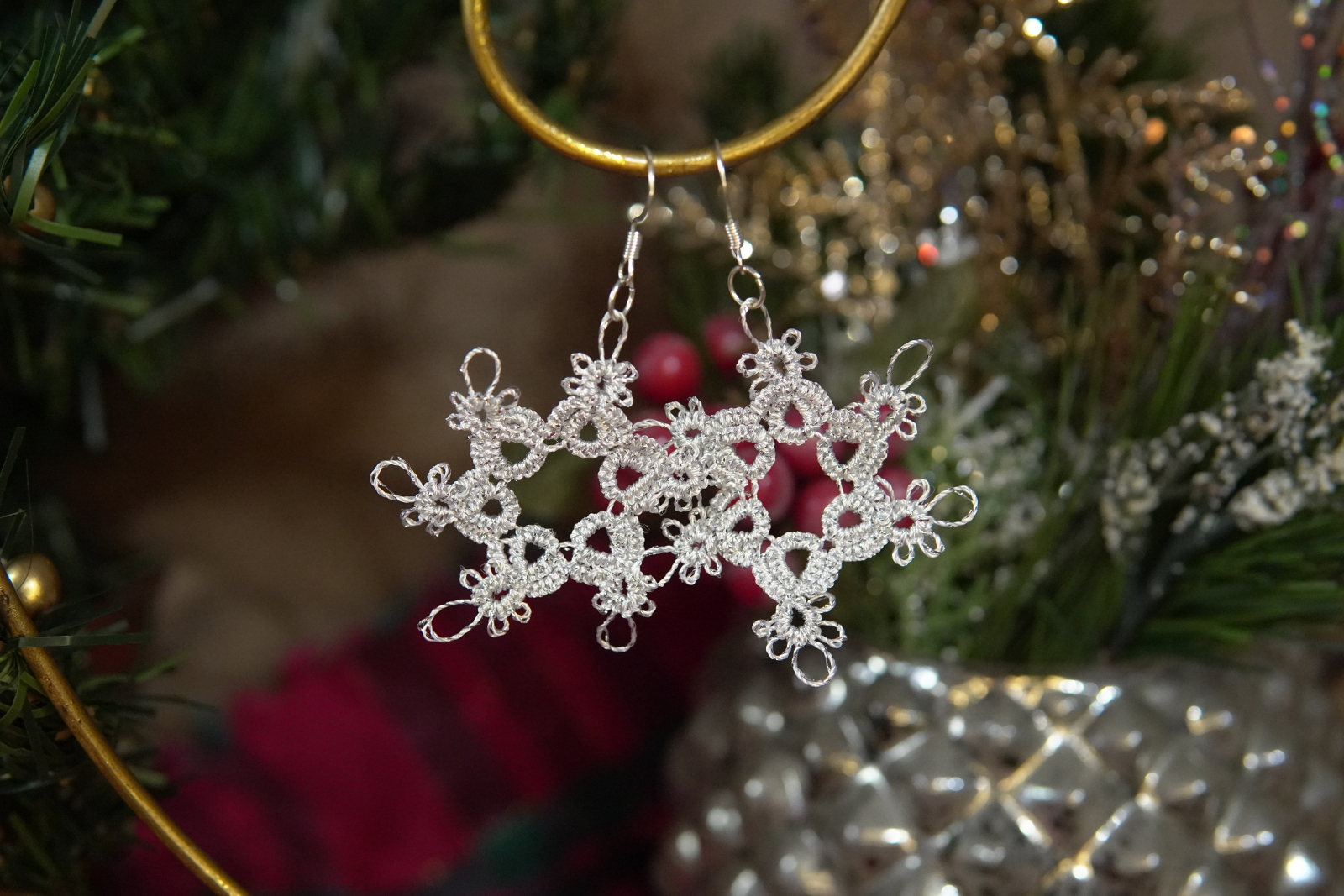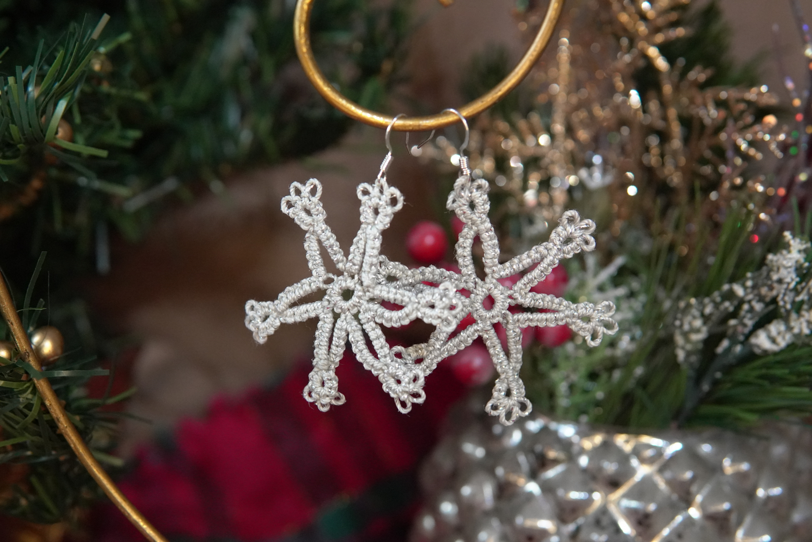 Tatted Silver Snowflake Earrings – Sparkle Winter Lace Jewelry (3 Styles)- Threadmarked