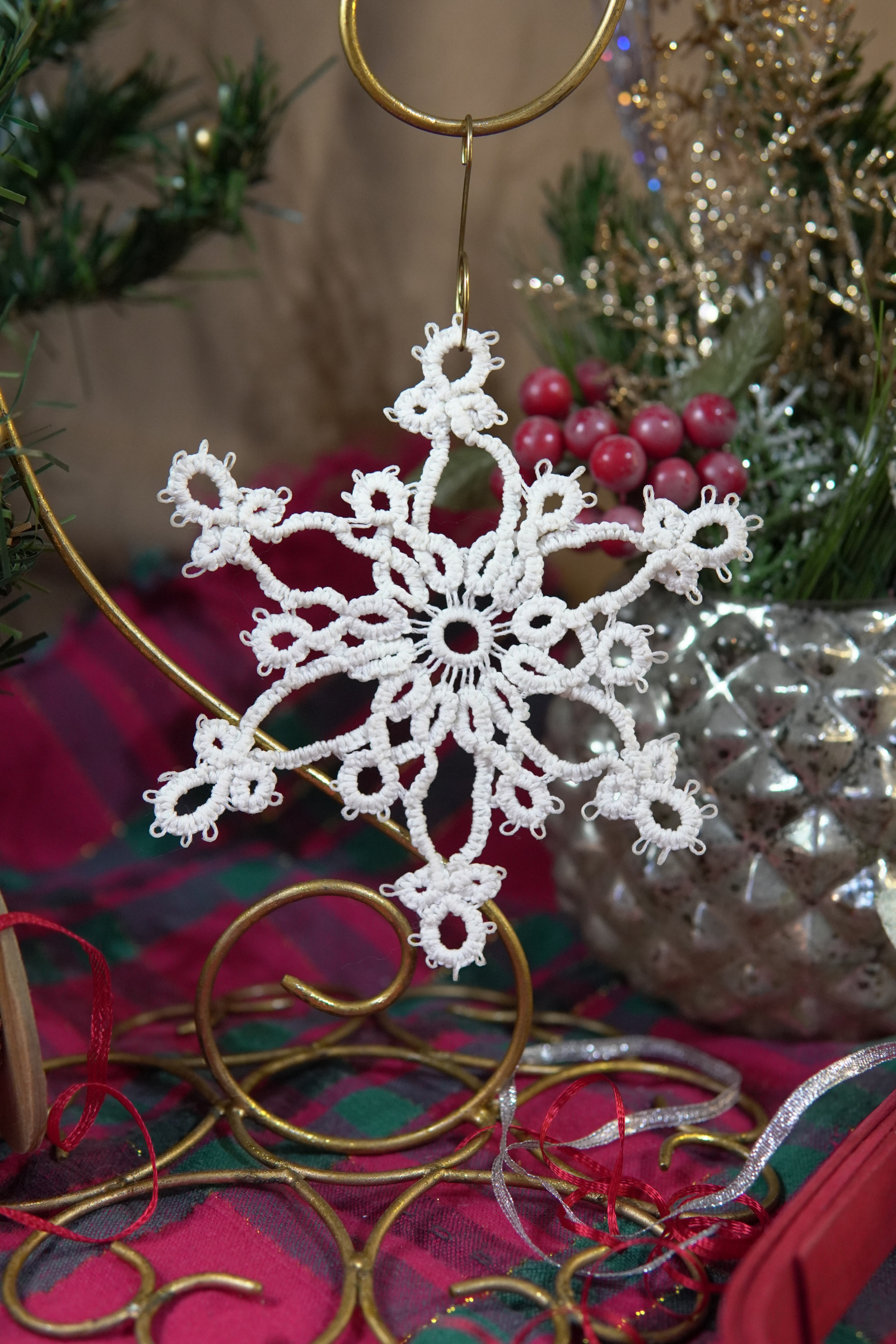 Bring winter’s quiet magic to your tree with these hand-tatted snowflakes, each crafted in crisp white thread using classic shuttle techniques. Every design reflects the delicate symmetry of real snowflakes—lightweight, intricate, and timeless. Perfect for holiday decor, gift-toppers, or heirloom keepsakes. Choose your favorite style from the available options.