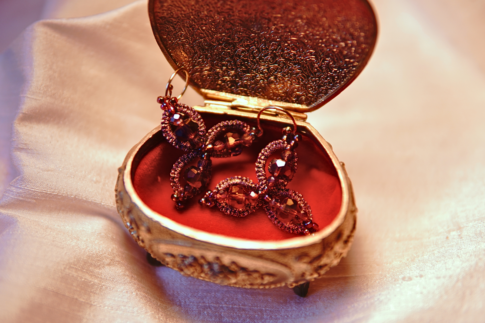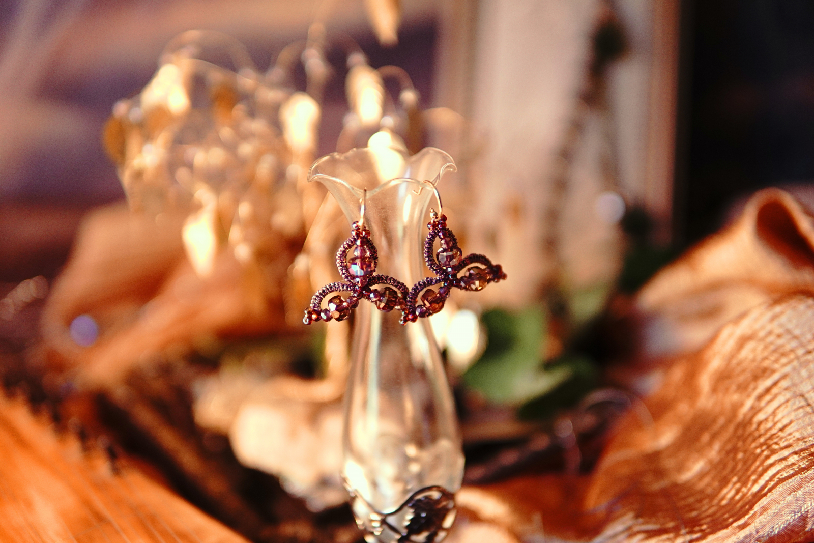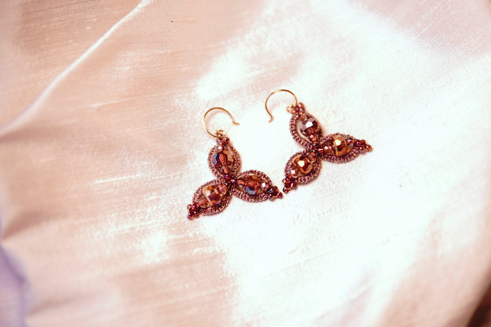 Needle-tatted using Italian polyester thread in rose, wine, and muted purple tones