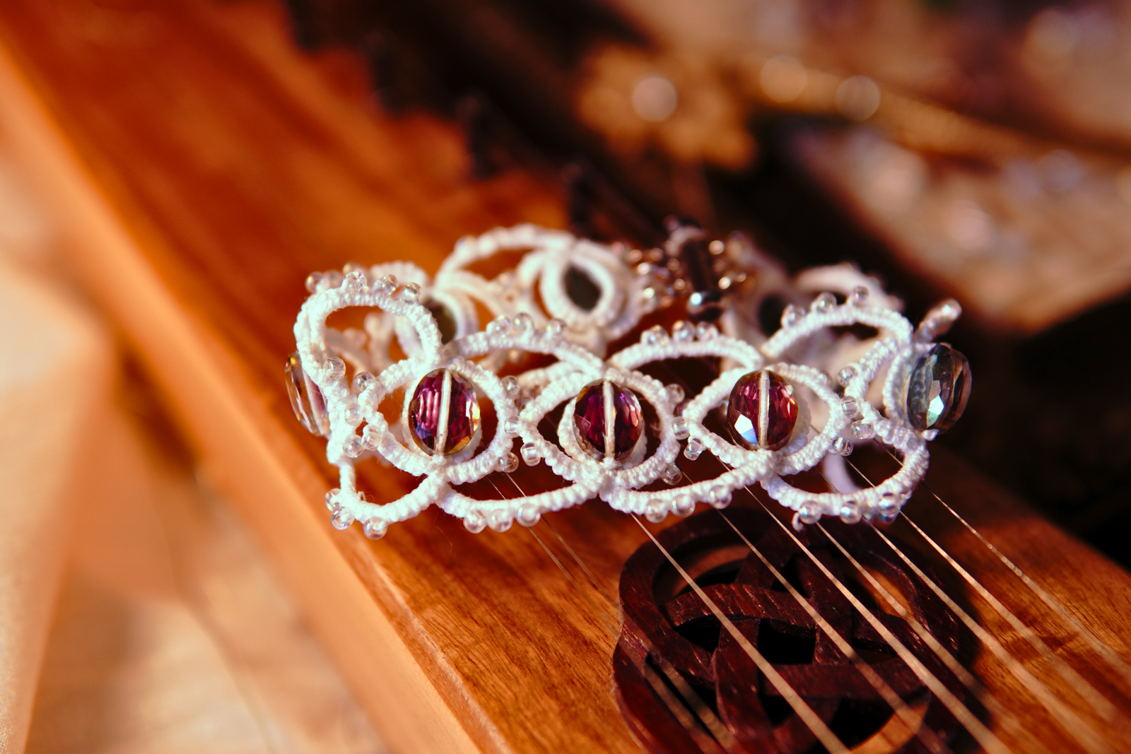 Whisperbind Bracelet – White Tatted Lace with Aurora Borealis Crystals